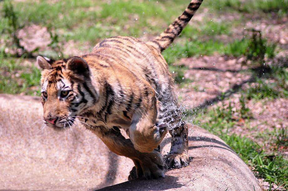 Under Keahey’s care, Aasha began to grow in size and, even though Keahey was unable to sit in Aasha’s enclosure with her now that she was bigger and healthier, she still loved to interact with the tigress through games like giving Aasha a good soaking with a hose.